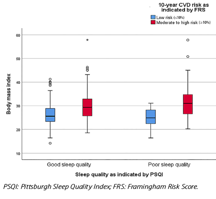 Figure 1: Impact of body mass index on sleep quality and 10-year cardiovascular disease (CVD) risk.