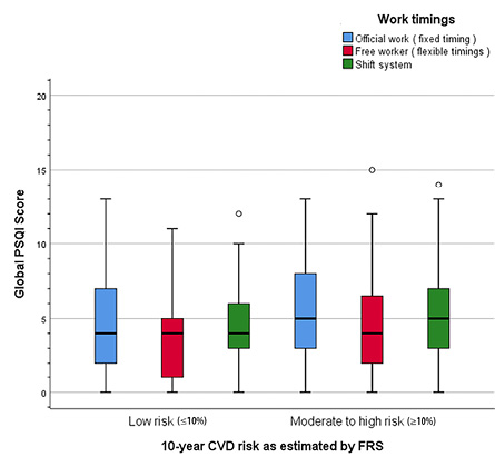 Figure 2: Impact of work timings on sleep quality and 10-year cardiovascular disease (CVD) risk.