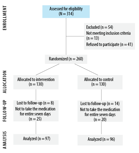 Equal numbers of participants were randomly assigned to either the umifenovir group or control group using a four-block design via www.sealedenvelope.com. This method reduced selection bias and ensured balanced representation across treatment arms.