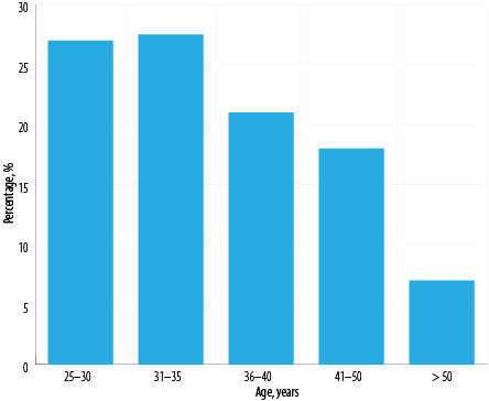 Figure 1: Age-group distribution of primary care physicians (N = 281).