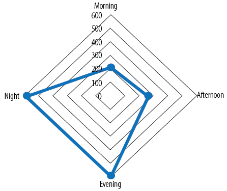 Figure 1: Radar chart of pediatric trauma patient’s emergency department arrival time plotted over parts of the day.