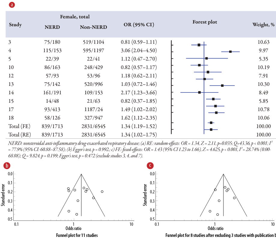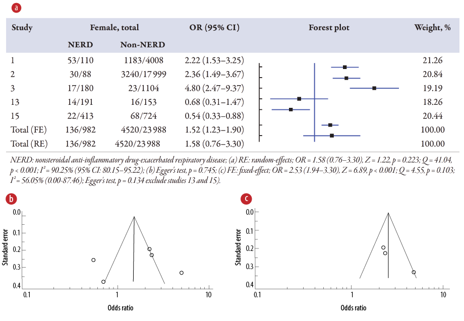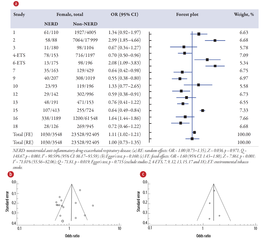 Figure 5: (a) Overview of the meta-analysis results of asthma on NERD and non-NERD groups.