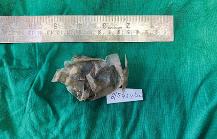Figure 3: Gross image showing papillary excrescences inside the cyst wall.